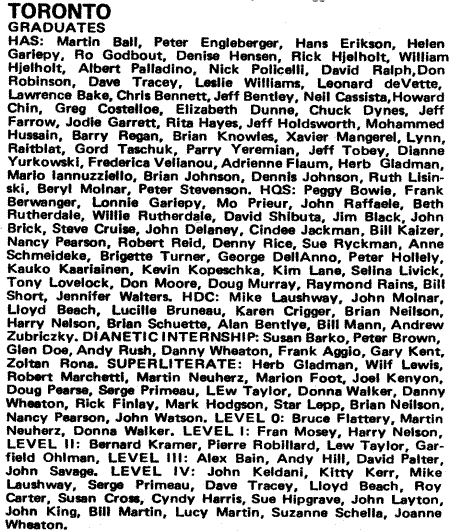 We have scanned the lists of Levels 0-IV completions from around the country from 2 different issues of The Auditor picked at random from the 1970s. Below are two sections (Founding Church of Washington, D.C. and Toronto) from The Auditor Issue 90.